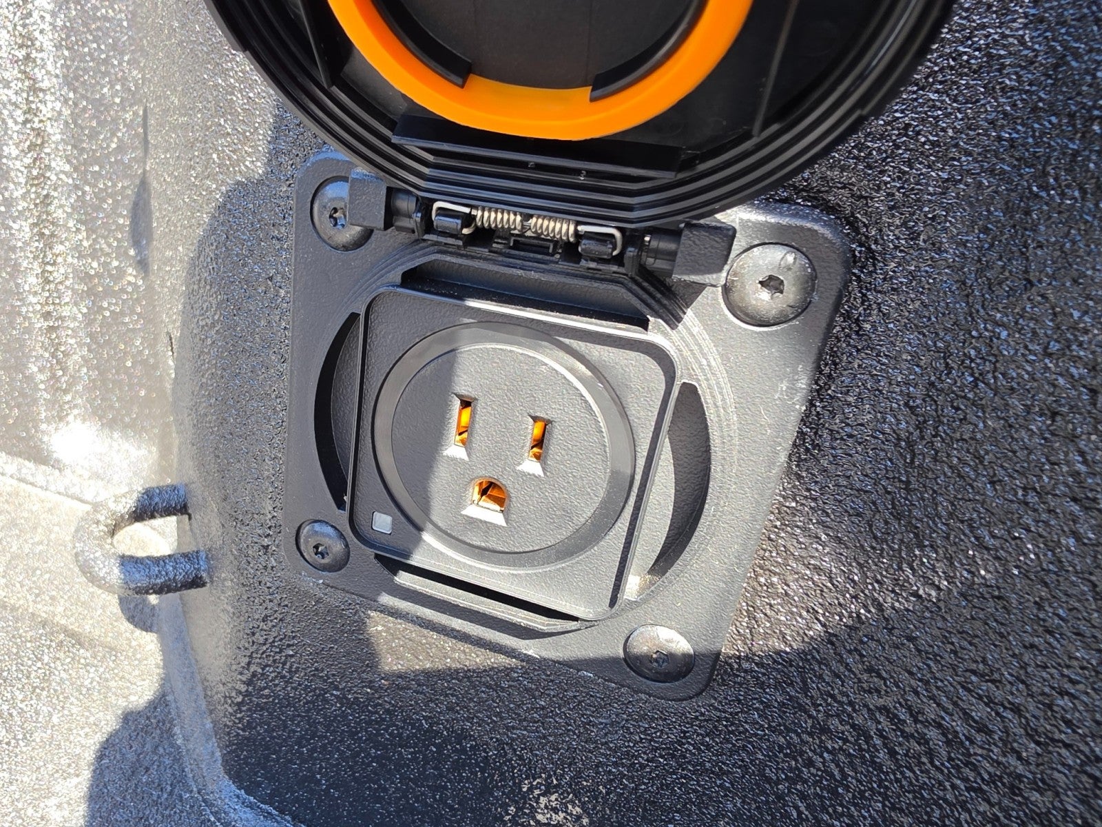 - Shows a close-up view of the trailer hitch1