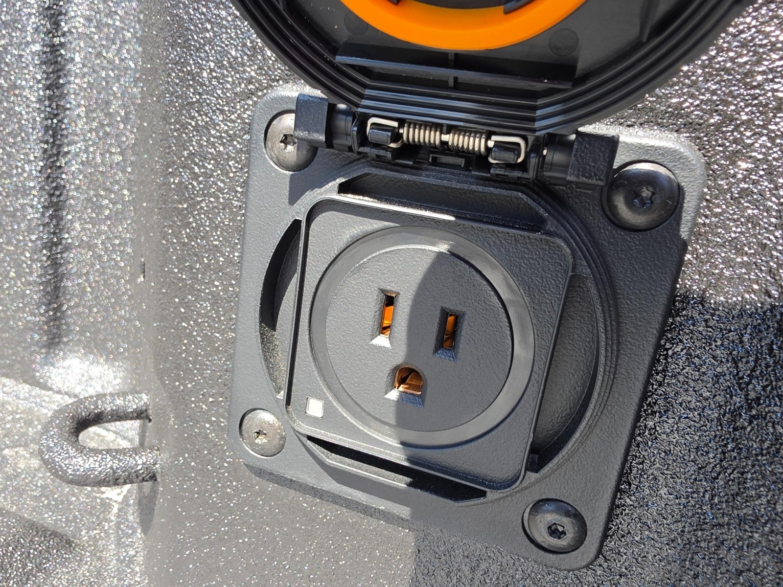 - Shows a close-up view of the trailer hitch1