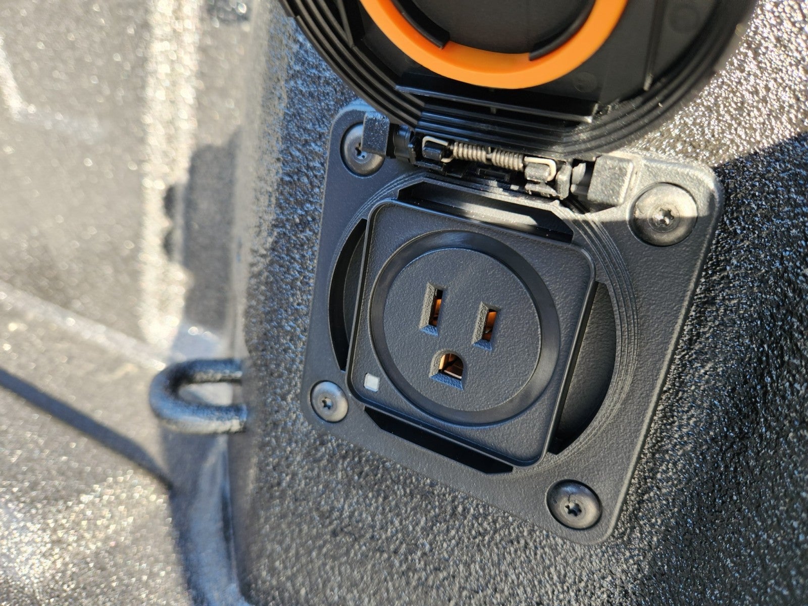 - Shows a close-up view of the trailer hitch1
