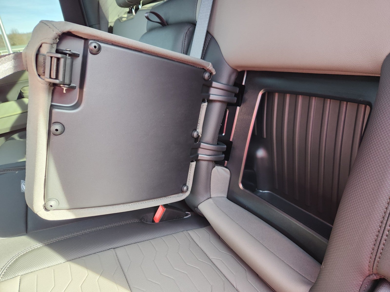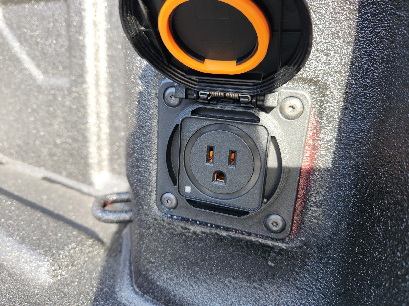 - Shows a close-up view of the trailer hitch1