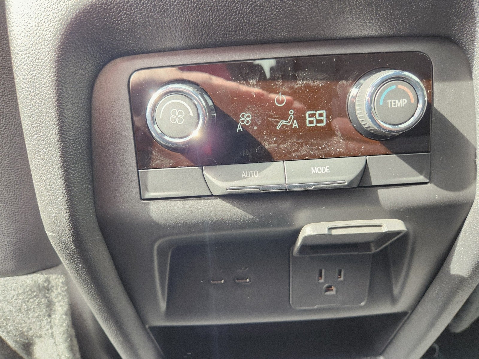 - Auxiliary controls in the rear of the cabin include air delivery mode and temperature up/down settings