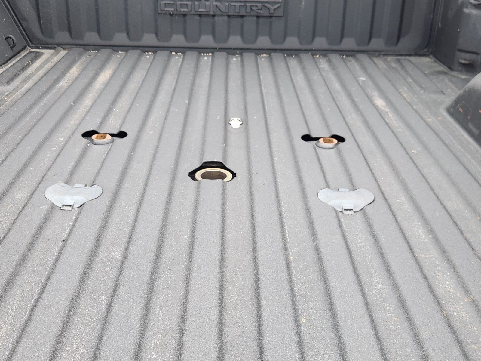 - Hitch platform with tray to accept ball and stamped bed holes with caps installed